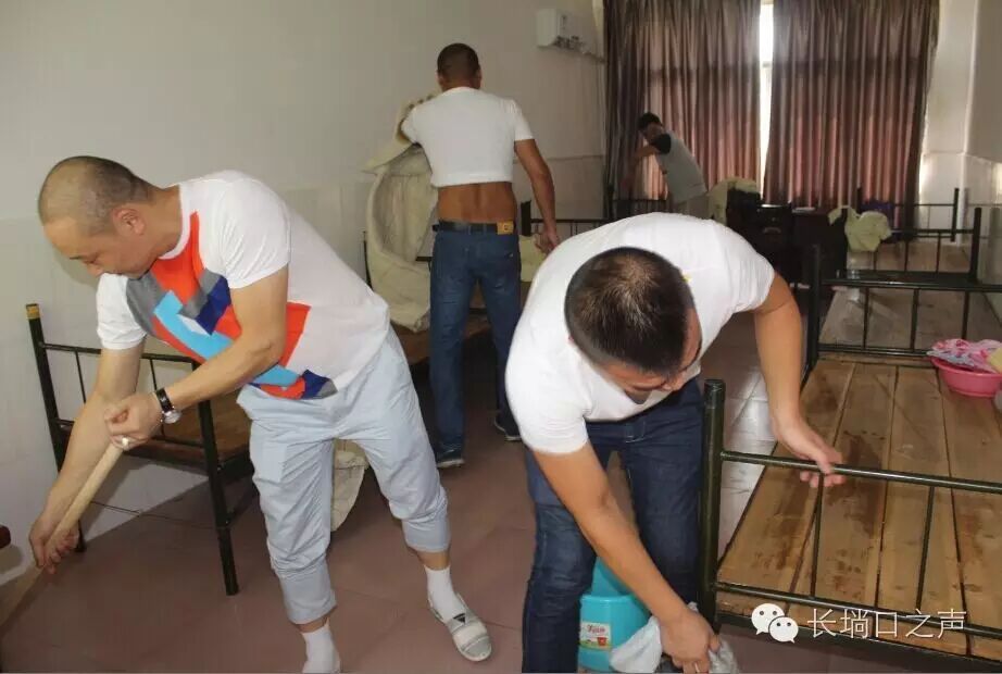 搬床、拖地、擦桌子、铺床……各班成员分工明确,不到半小时就完成了内务整理。
