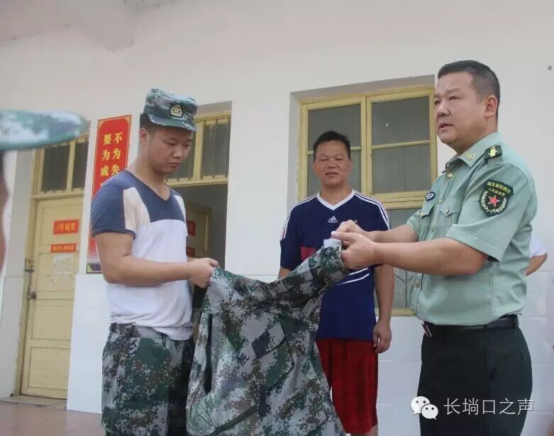 期盼已久的迷彩服到了,镇武装部长陈正文亲自为学员讲解迷彩服的正确穿法