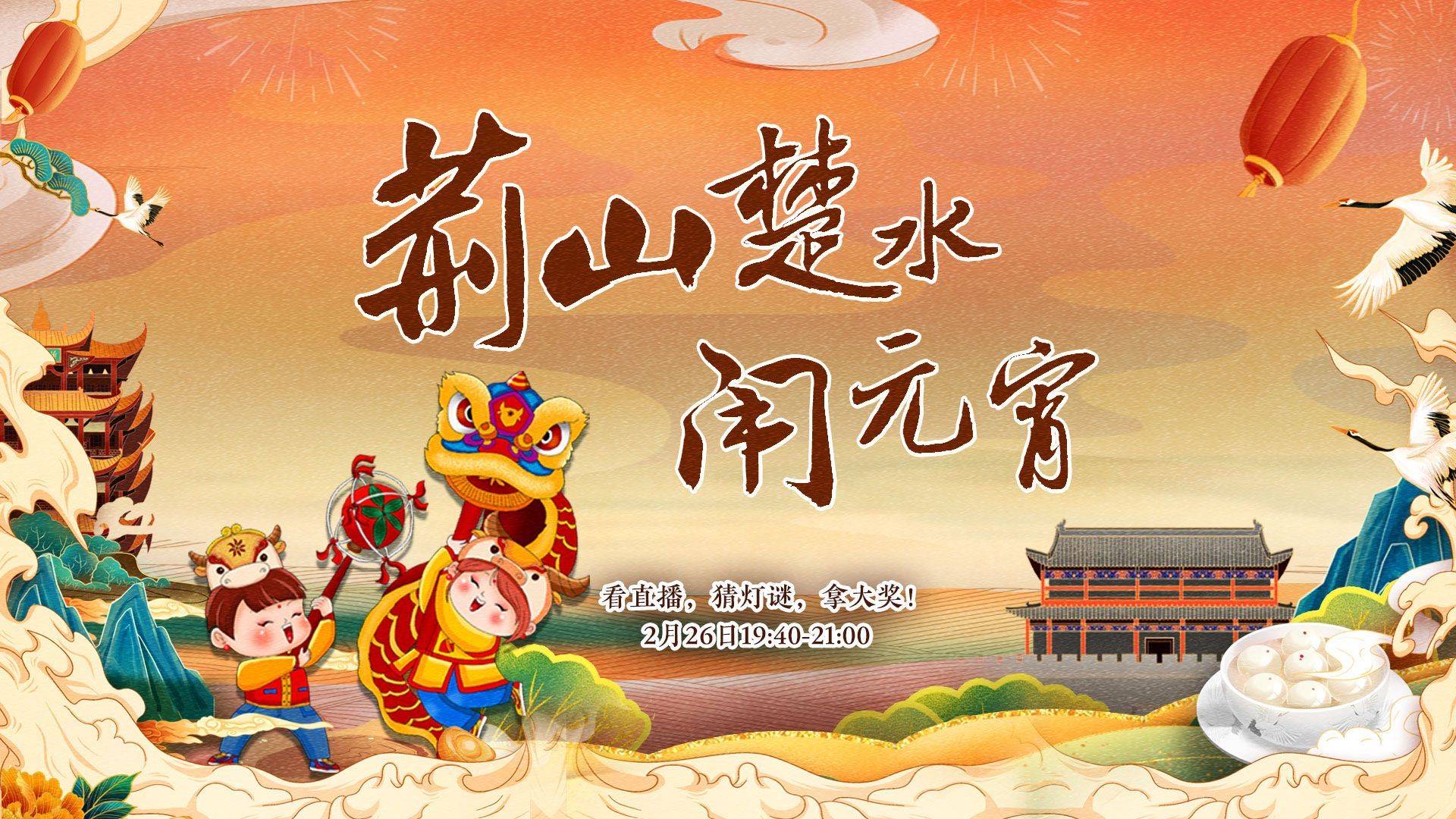 据了解,本次特别直播活动主题分为游园、团圆、梦圆三部分,在全省多个分会场进行直播大串烧,湖北广电主持人或外景记者、当地名人坐镇分会场,综合运用航拍、延时、体验式直播等不同手段,口号、团拜、快闪、灯光秀等不同形式,真实、客观呈现元宵节湖北各地特色“闹”法。