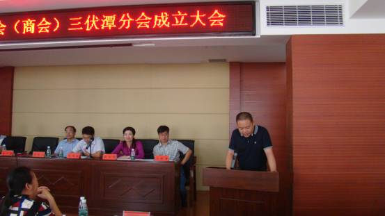 新当选的工商业联合会(商会)三伏潭分会会长蒋宇峰在会上表示,镇商会将会打造好商会品牌,更好地发挥商会经济性、民间性有机统一的优势,团结广大三伏潭商人加大投资力度,积极参与社会公益事业,树立良好形象,关心和支持家乡的建设,共谋发展。