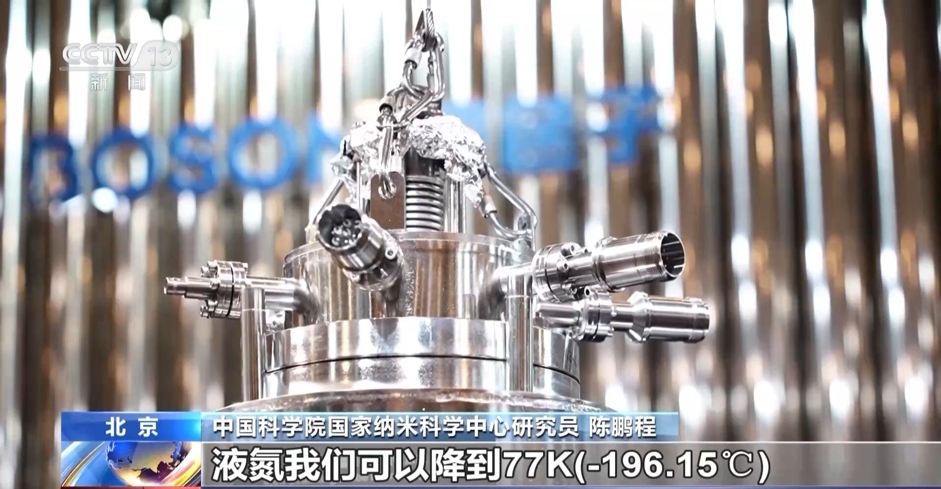 中国科学院国家纳米科学中心研究员 陈鹏程:这是一款极低温的显微镜,液氮我们可以降到77K(-196.15℃),液氮能降到4K(-269.15℃),但是物理学家在追求极致的时候,在10毫K(-273.14℃)的温度下就可以把原子全部冻起来,这样我们就可以研究新的纳米技术、新的物理原理。纳米材料的一个显著的特征就是表面积特别大,每一层结构里都有很多纳米材料,它的表面有几百个平方米,所以它可以把这个温度给导出来。