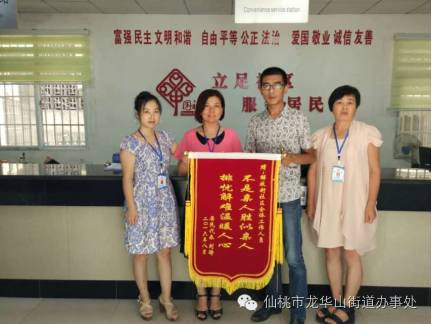 8月15日下午,龙华山解放街社区居民代表刘涛为社区送来锦旗一面“不是亲人胜似亲人、排忧解难温暖人心”的锦旗,表达自己对社区的谢意。