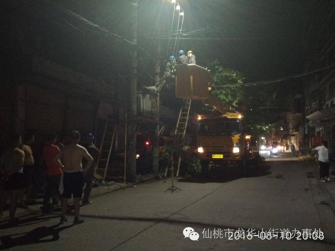 8月10日(星期三)晚上17:20,位于解放大道中段159号(解放街社区门前)因为用电负荷急增,导致变压器忽然起火,着火的电线上的胶皮冒出阵阵浓烟,着实让老百姓担心了一把,解放大道中段陷入停电困境。幸亏解放街社区干部速与驻仙桃荆州电力工作人员联系,并协助电力师傅抢修,仅三个多小时就恢复了正常供电。