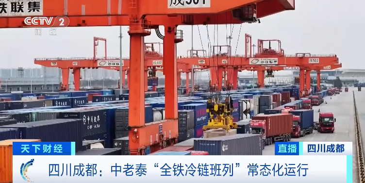 眼下正是东南亚榴莲采摘上市的高峰期。在四川成都国际铁路港的进口榴莲集散中心,随着近日中老泰“全铁冷链班列”常态化运行,榴莲进口实现“一箱直达”,运输时效从原本的一周左右,缩短至5天,榴莲的销售价格也下降了三成以上。榴莲批发商表示,今年成都的进口榴莲集散中心预计将进口榴莲大约2万吨。