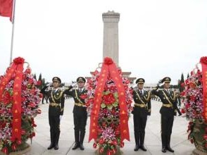 随后,湖北省领导和全省各界代表依次向烈士纪念碑鞠躬,大家绕行一周瞻仰纪念碑,并献上菊花,致以深深的敬意。