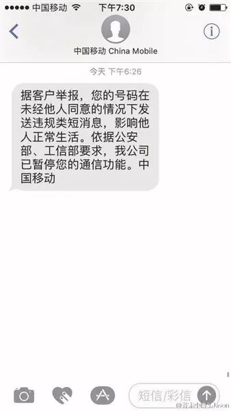 近日,多地移动用户称,自己的苹果手机因无故向陌生账号发送多条有关“澳门赌场”的iMessage短信息,手机号码被关停。对此,移动工作人员回应:关停号码是系统自动检测加上有人举报所致,因无法判断是否系本人所为,暂无法恢复手机号码的使用。