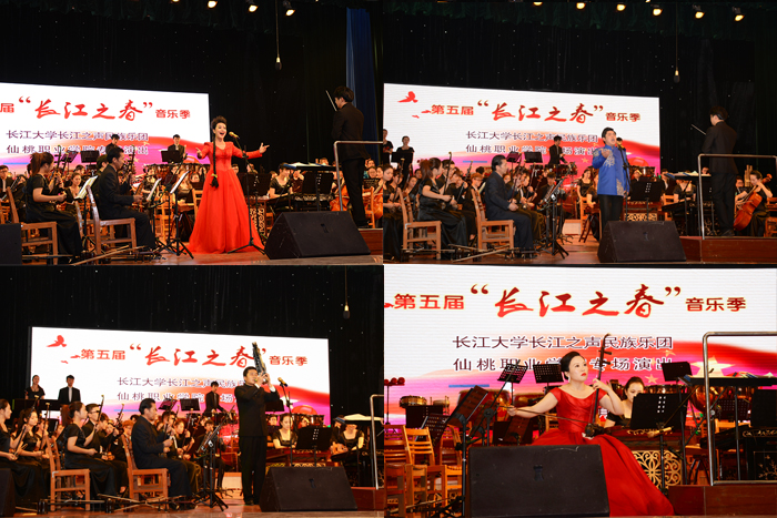 12月7日晚,第五届“长江之春”音乐季长江大学民族乐团专场演出在我院文化艺术中心举行。长江大学副校长周从标,学院党委书记郭百高、院长李立勇与近千名师生共同欣赏演出。