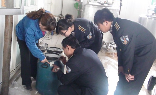 在现场检查中,执法人员还发现了2桶不明液体添加剂。目前,该镇食药所已将该酒坊生产的涉嫌甲醇超标白酒进行了查封和扣押,同时对现场发现的不明液体添加剂和库存的其他白酒进行了抽样送检,目前此案在进一步办理中。