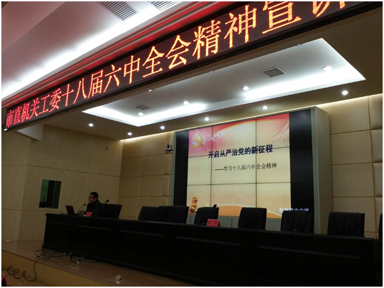为全面深入贯彻党的十八届六中全会精神,根据市委工作安排,11月25日上午,市局在市委党校学术报告厅举办全系统党的十八届六中全会精神宣讲会。全体局领导、系统200多名党员参加。