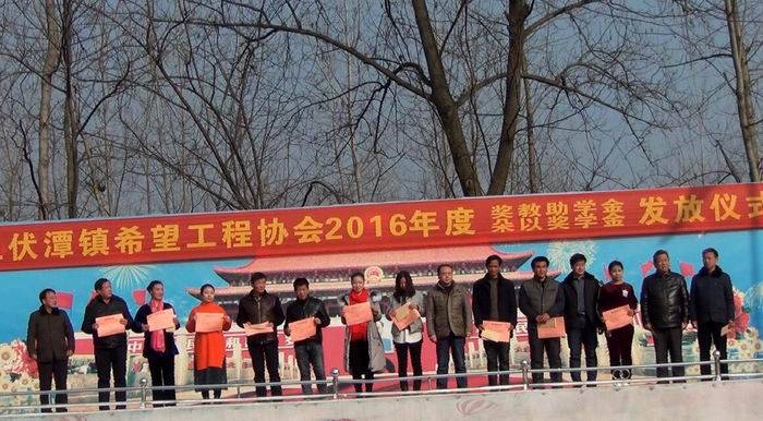 浓浓乡情、拳拳爱心,汇聚成捐资助学的阵阵暖流。12月30日,三伏潭镇希望工程协会2016年度“奖教助学金”和“朵以奖学金”发放仪式暨迎新文艺汇演在三伏潭初级中学举行。市、镇、村各级领导及社会爱心人士等到会祝贺并亲自颁发奖金和荣誉证书。全镇三千多名师生、学生家长出席此次盛会。