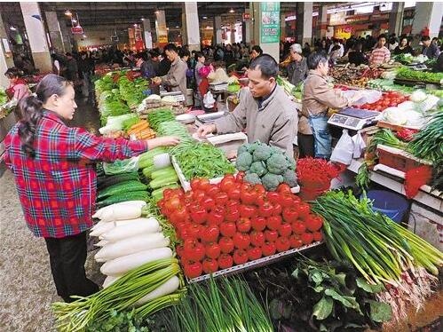 3月8日,消费者在南京一家超市查看蔬菜价格。苏 阳摄