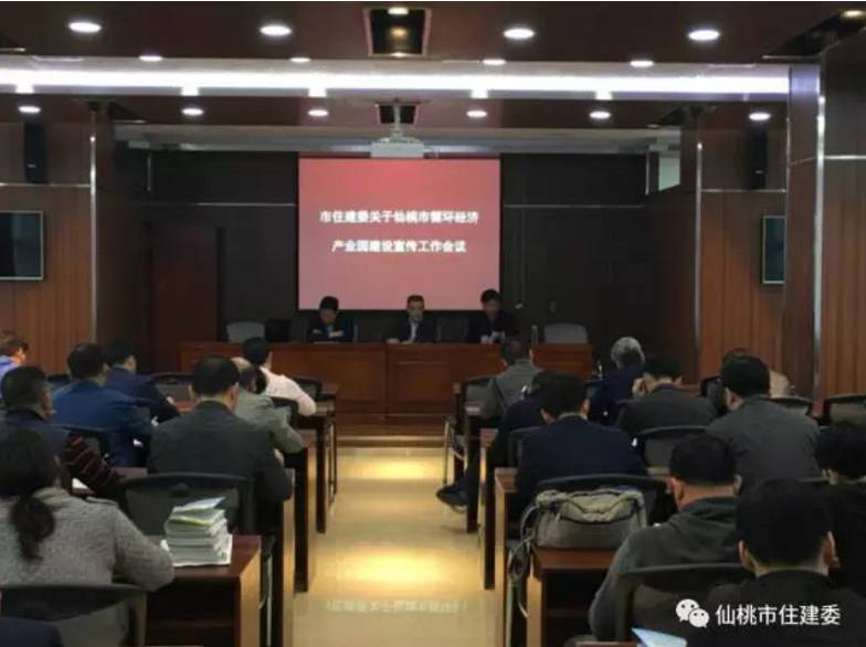 4月5日,市住建委党组书记、主任刘行兵在住建委8楼会议室主持召开循环经济产业园建设宣传教育专题会议,会上观看了《仙桃市循环经济产业园科普宣传片》、《仙桃市垃圾处理工艺宣传片》,传达贯彻了全市循环经济产业园建设宣传教育工作会议精神。