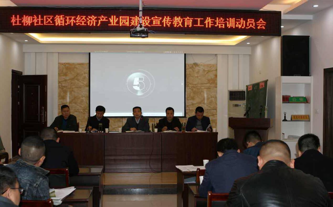 4月10日,市国土资源局在杜柳社区组织召开循环经济产业园建设宣教工作誓师大会,局党组书记、局长王诗文带领工作专班、社区干部、居民代表和小区物业管理员共67人庄严誓师:实行‘‘四个全面’’,确保圆满完成宣教工作任务。