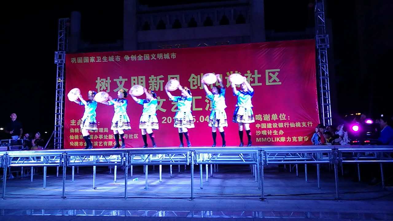 5月4日晚,沔阳公园内歌声嘹亮,舞姿翩翩,由沙嘴办事处“新城壹号”社区主办,有8个社区参与的“树文明新风创和谐社区”文艺汇演在这里举行。