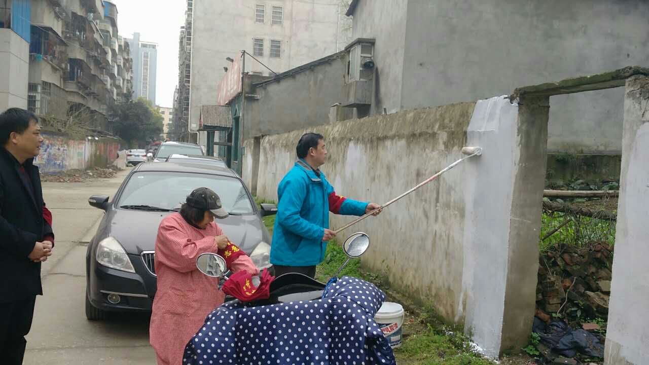 图为我市前通路新街巨幅墙体广告整治现场