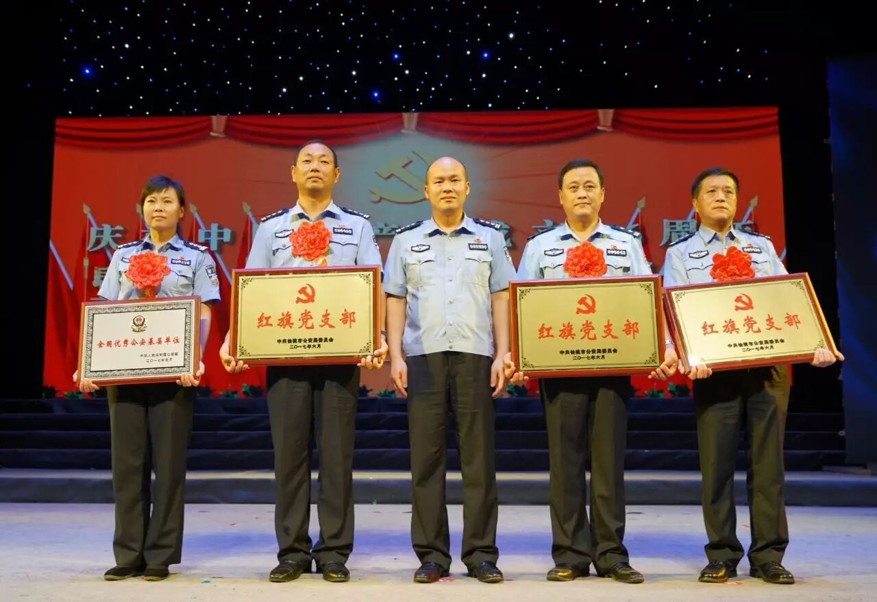 王海军同志为获得“全国公安优秀基层单位”称号的出入境管理支队和获得“红旗党支部”的警务督察支队党支部、交警支队四大队党支部、看守所党支部等单位授牌颁奖。