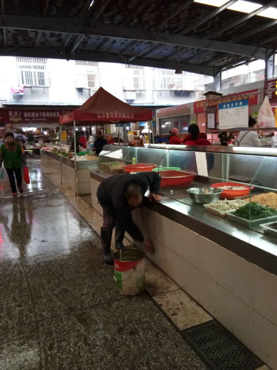 对人,要求严格;对物,并不松懈。市场内的垃圾桶,每日进行清洗,早晚喷洒灭蚊药物;定期投放灭蟑螂及灭鼠药,防止病毒感染;台面、地面、下水道,定期进行维修。