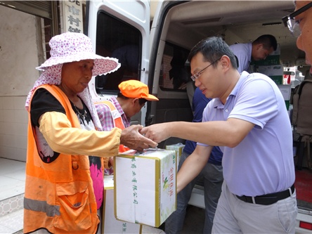 连日来,持续高温,广大环卫工人战高温、斗酷暑、迎热浪,坚守工作岗位。7月24日上午,西流河镇党委书记杨俊武为坚守在一线的环卫工人送上清凉油、防晒帽子、毛巾、矿泉水等防暑降温用品及慰问金,详细了解他们的工作时间、饮食等情况,叮嘱他们在高温天气工作一定要保重身体,并对他们在高温下的辛勤工作表示感谢。