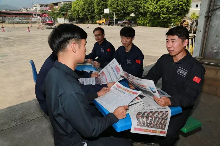 南方电网广东省输变电工程有限公司直升飞机机巡二队在空域管制期时刻待命,并组织对十九大的内容开展学习和讨论。