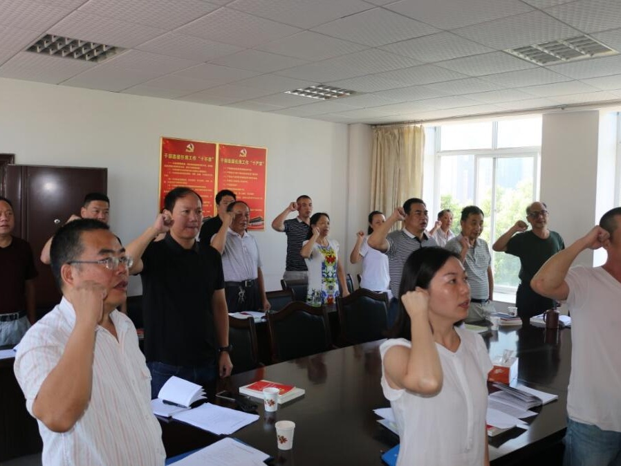 活动中,支部全体党员缴纳了本月党费、重温了入党誓词、集体诵读了《党章》,学习了《关于加强换届风气监督的通知》。《湖南通报13起违反换届纪律问题典型案例》、《湖北省市县乡领导班子换届工作〈简报〉》、《仙桃市加强换届风气监督工作方案》和《胡玖明同志在全市突出环境问题整治工作动员大会上的重要讲话》等内容,开展了“讲道德、有品行”专题讨论。