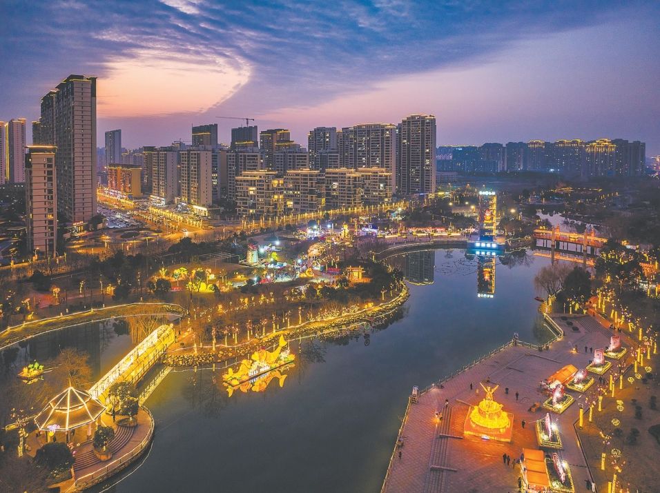 随着沔阳公园、前通河两岸灯组同时亮起,璀璨灯光点亮整片夜空,绚丽色彩映照着河水波光,勾勒出华彩闪耀、映照仙桃的盛景,引得现场市民游客阵阵欢呼。