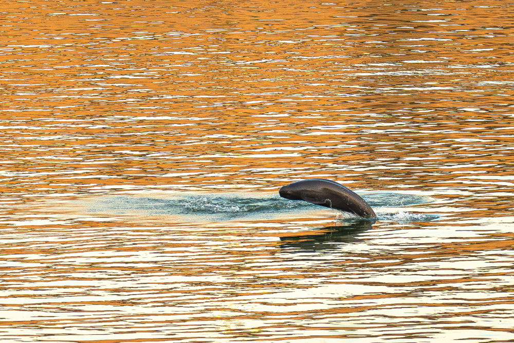 长江宜昌葛洲坝下游附近,江豚逐浪嬉戏,与浪共舞。新华社记者 肖艺九 摄