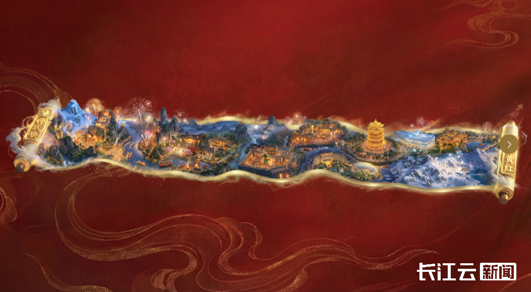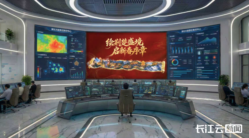 大屏亮起,荆楚长卷铺开,数字光束沿着“神武峡”“赤黄红”奔涌而出,唤醒全省近百个景区。