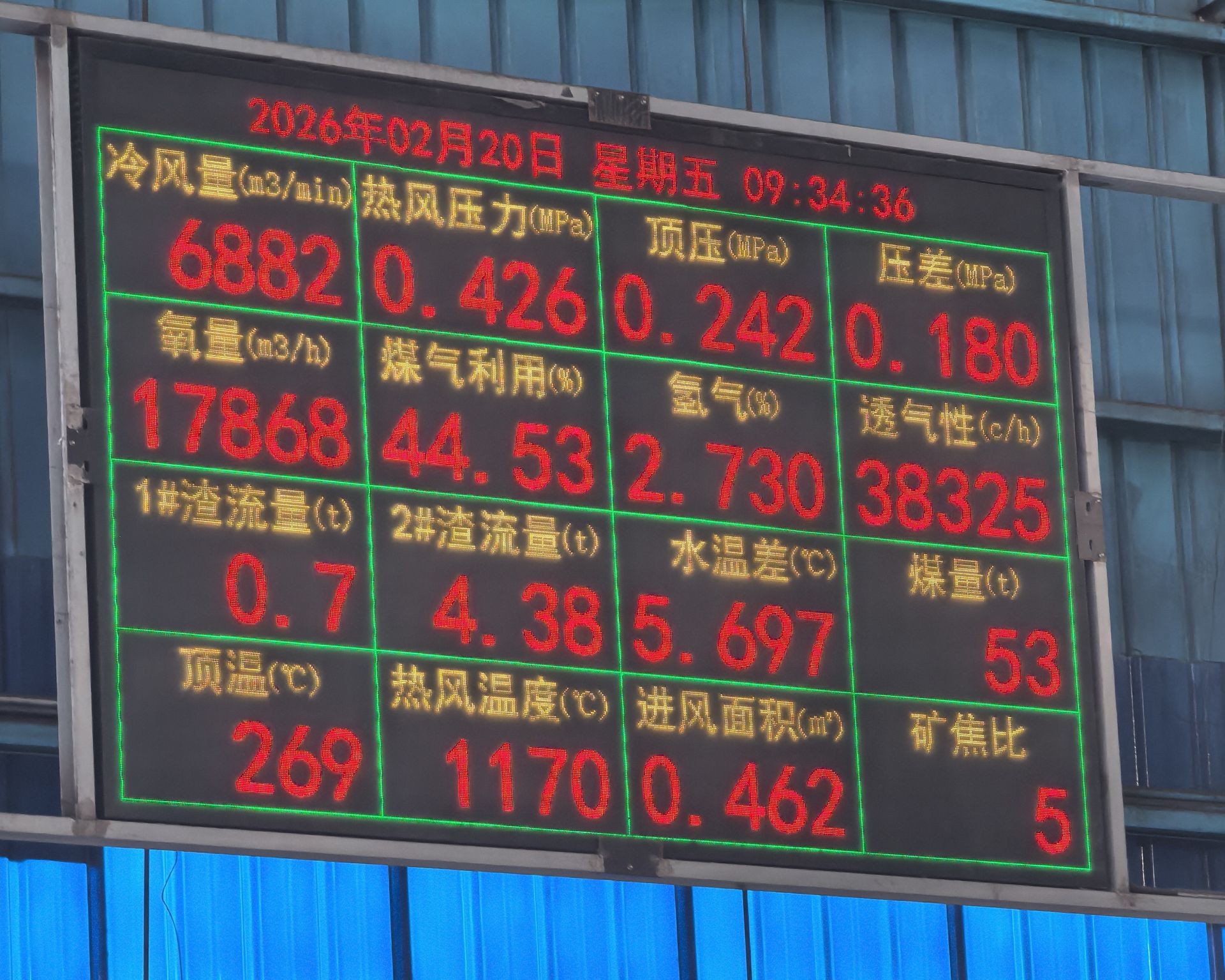武钢有限炼铁厂7号高炉炉长左红星介绍,7号高炉于2022年完成环保提升工程,通过“5G+工业互联网”改造,全面满足国家超低排放要求,实现智能、高效、环保、安全转型,曾多次荣获宝武集团成本冠军炉、效率标杆机组等称号,各项指标均达到行业领先水平。