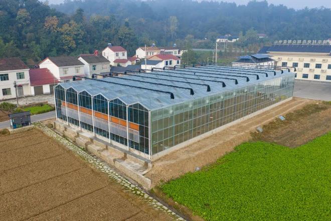 花林寺镇桃李村占地1000多平方米的智能玻璃温室大棚。图片来源:秀美花林