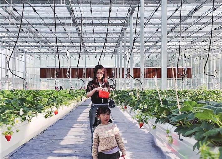 作为集可观赏、可互动、可品尝于一体的特色景观,该草莓园打破了农业生产与休闲旅游的界限,依托桃李村现有的乡村旅游基础,将高科技农业与休闲旅游深度融合,让游客在享受采摘乐趣的同时,也能沉浸式感受新型农业业态。