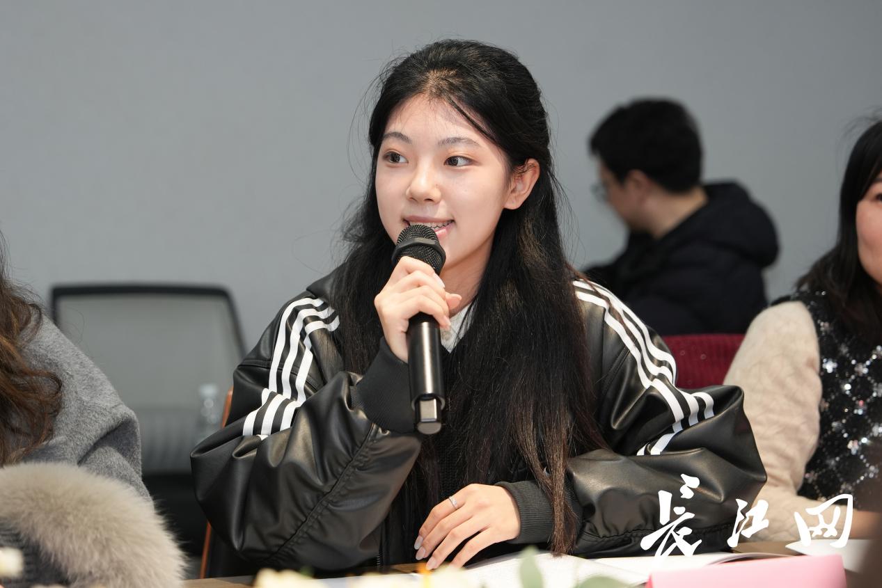 武汉理工大学艺术与设计学院动画与数字媒体艺术专业2024级硕士研究生王梦可作交流分享。记者彭年 摄
