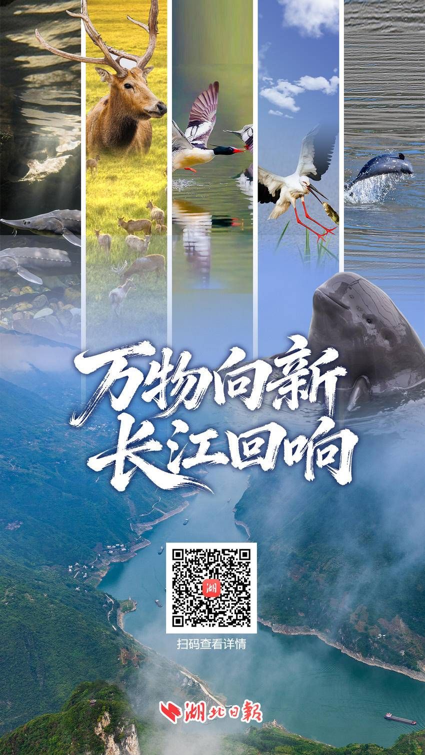 从三峡门户到江汉平原,从湿地湖泽到都市江岸,中华鲟的洄游、麋鹿的奔腾、中华秋沙鸭的驻足、江豚的欢跃、东方白鹳的翩跹,这些珍稀生灵的归来与繁盛,并非偶然。