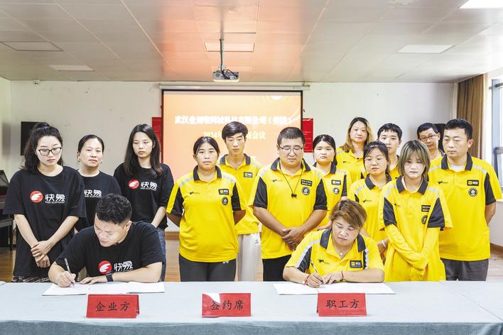 在武汉市武昌区机安社区区域性职工之家,外卖骑手代表同外卖配送商武汉壹刻啦同城科技有限公司代表举行集体协商会议。 (资料图片 湖北日报全媒记者 任勇 通讯员 梁芹 孙凡 摄)