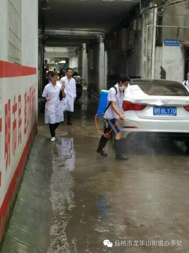 对辖区的企业,龙华山街道党工委和办事处时刻不忘跟踪企业滞水及雨后生产情况,鼓励企业继续做好汛期排水工作,并安排好企业生产工作。对淹水的社区进行社区以及社区街道的清理消毒防止细菌、蚊虫滋生引发传染病。对危房中的居民及时劝其搬离,防止新一轮的降水导致更大的损失与伤亡。