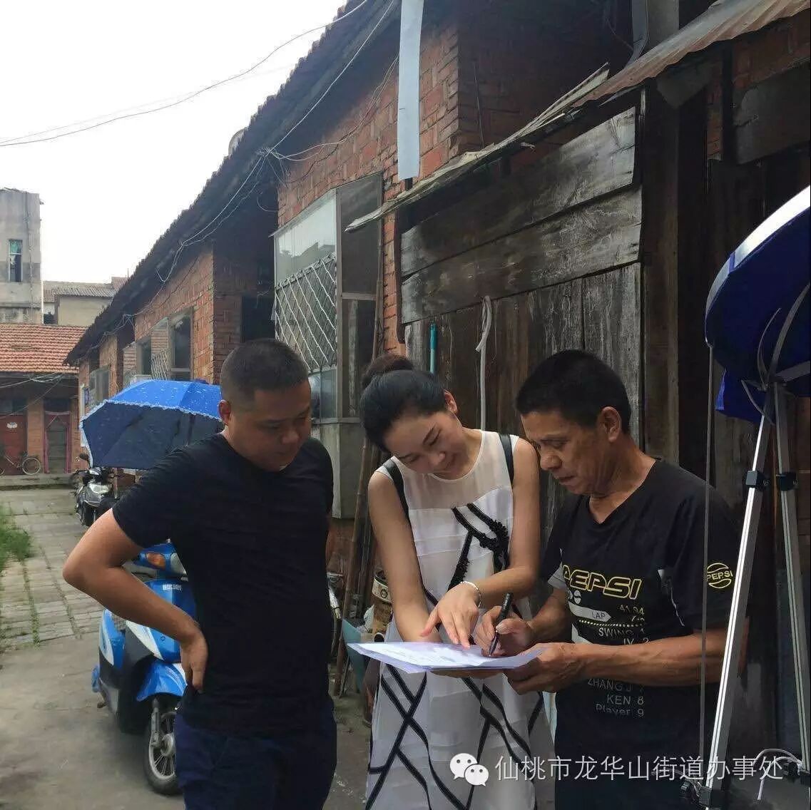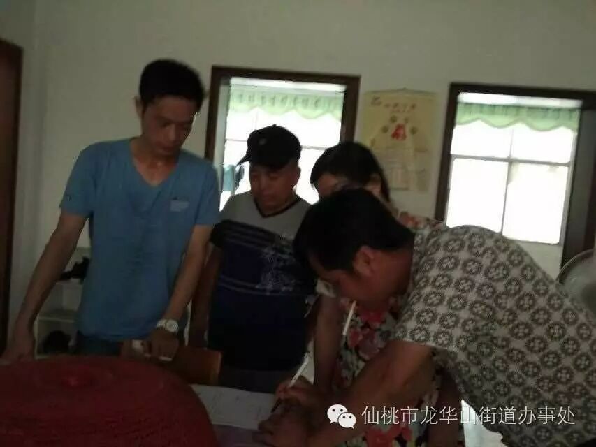 办事处领导与油榨湾社区干部到辖区危房居民家劝其大雨将至,搬离危房,并在撤离通知书中签字