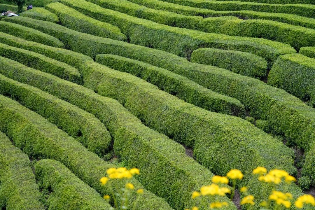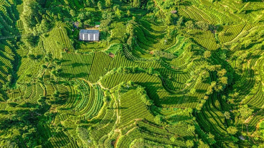 ▲春风拂面,碧绿如染,邓村乡层层叠叠的茶垄连绵起伏