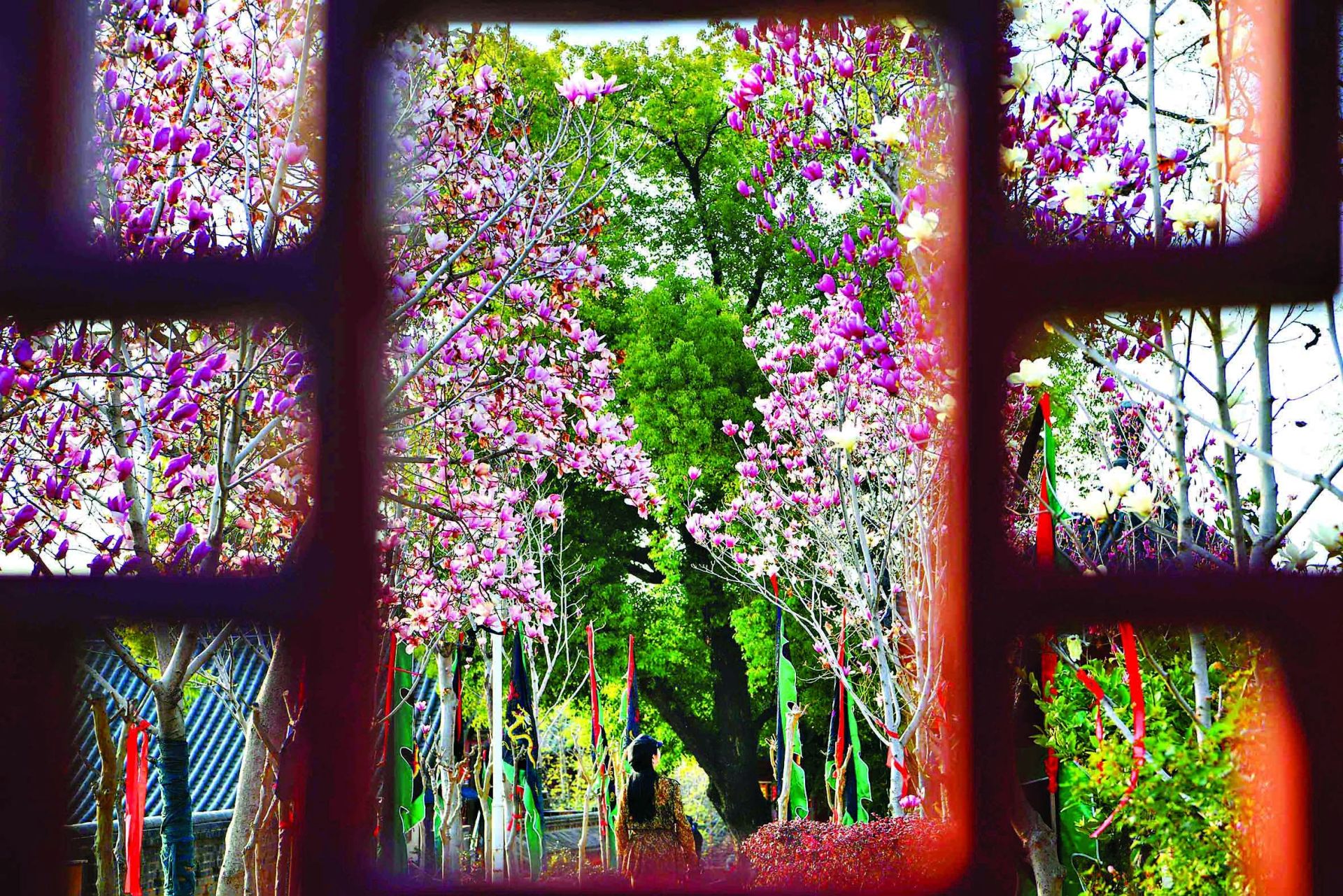 长春观的玉兰花窗。 高勇 摄