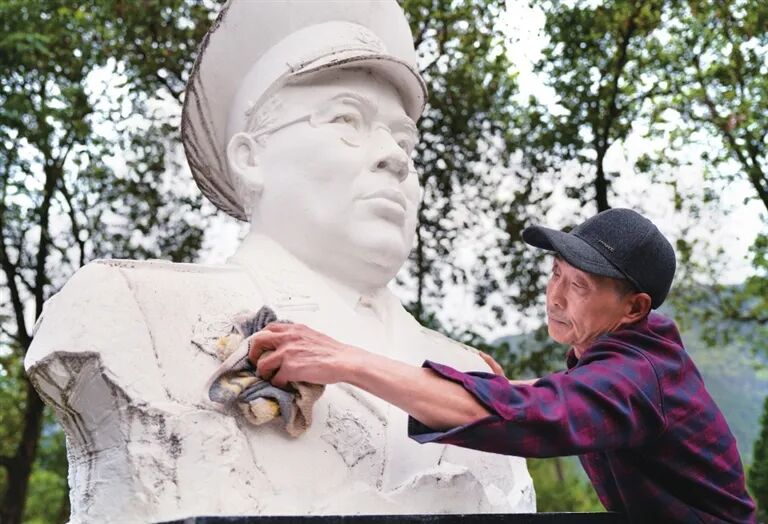 在将军墓碑旁,年过六旬的退伍老兵陈清国和他的妻子赵廷枚,自2018年起,像打理自家院子一样,义务擦拭墓碑、清扫落叶,为每一位来访者讲述将军的故事,已经默默看护了8年。没有职务,不计报酬,他们用平凡的坚守诠释对开国将军的敬仰。
