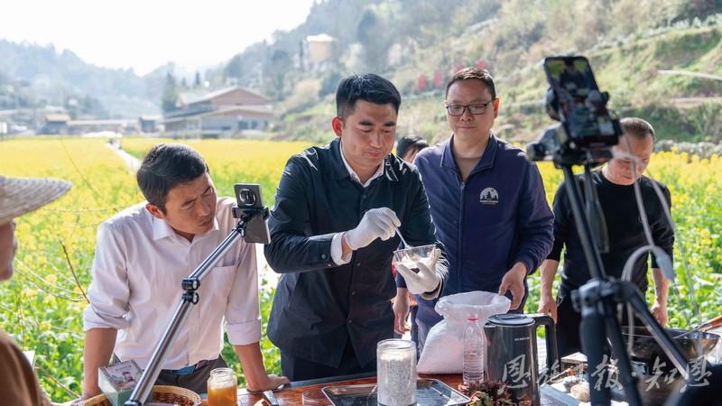 下午,覃浩在花田旁的空地上对着手机镜头推销村里的土特产:“家人们看,这是我们向家村的自产菜籽油,纯天然、无添加,今天下单,明天发货!”直播间里,订单提示音不时响起。这样的场景,在向家村村已成常态——电商直播让“花海流量”变成了“产品销量”。
