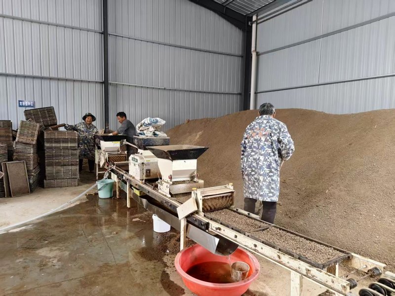 在该镇关庙山村自信农机服务专业合作社,沉睡的稻种“粒粒”搭上育秧“早班车”,被均匀播撒在铺满营养基质的秧盘中。