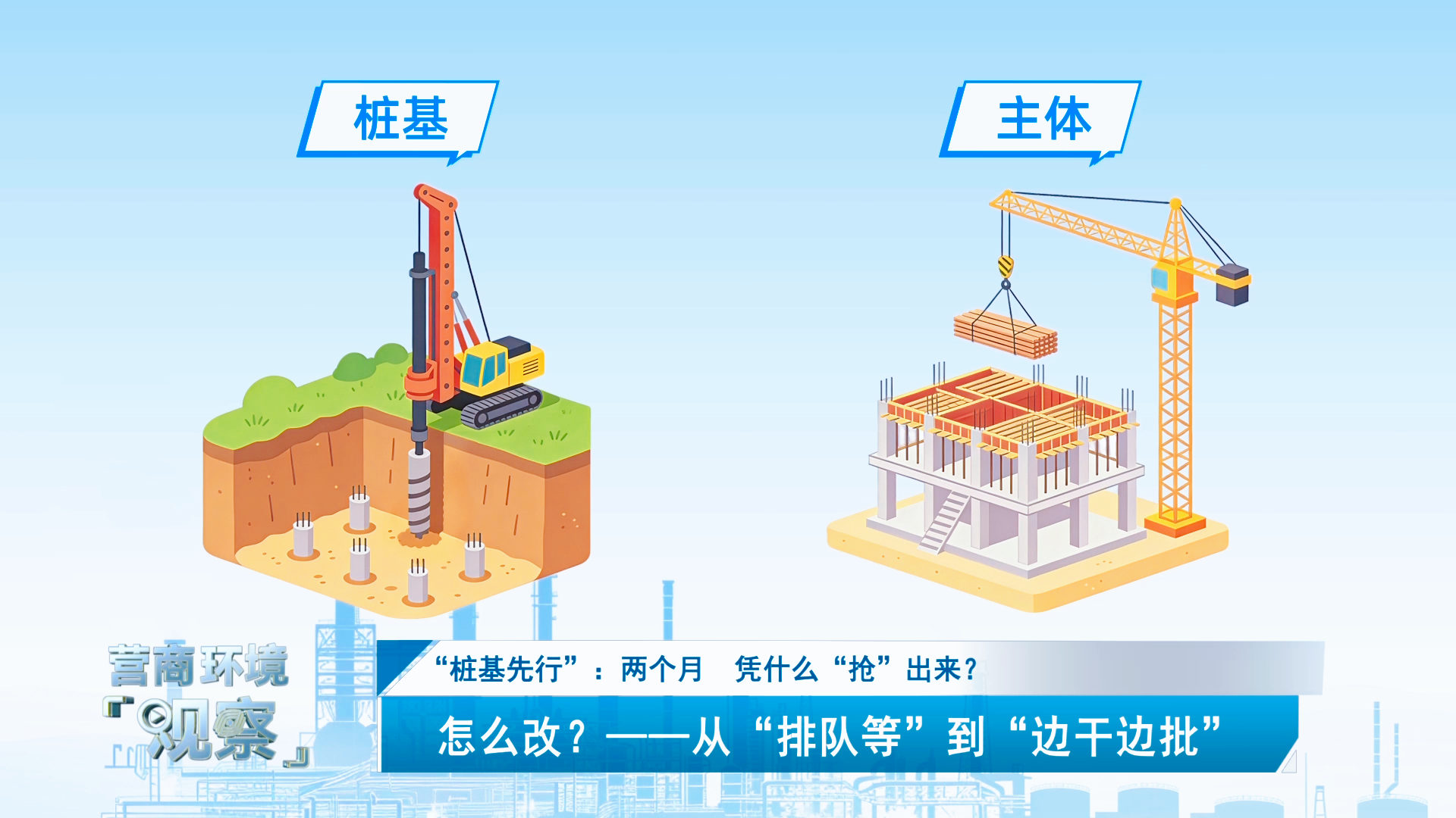 从“等齐再动”到“边办边干”,从“企业跑腿”到“秘书代办”——“桩基先行”改变的不仅是审批流程,更是政府的服务理念。当项目秘书把办公室“搬”到工地,服务跟着需求走,企业感受到的,是一种“被托举”的力量,“加速度”自然水到渠成。那么,这项改革如何从试点走向普惠?在审批提速的同时,安全底线又如何守住?