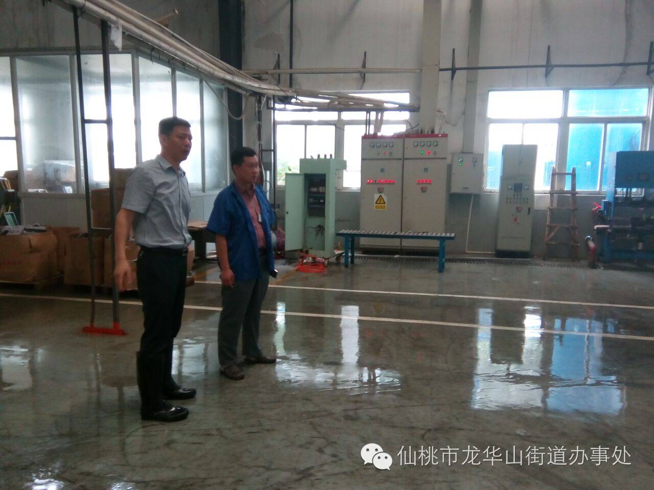 对辖区的重点企业,龙华山街道党工委和办事处时刻不忘跟踪企业滞水及雨后生产情况。7月7日上午,在连日暴雨、雨过天晴的间隙,街道党工委书记蔡涛来到辖区重点企业,先后走访了富士和机械、嘉富汽车零部件、雅都纸业、诺得胜制药、迈亚纺织、普天电子等近10家企业。在了解到嘉富汽车、雅都纸业、普天电子等企业暴雨期间没有积水的情况后,他鼓励企业继续做好汛期排水工作,并安排好企业生产工作。在富士和机械、诺得胜制药、迈亚纺织等企业,在了解企业存在部分积水的情况时,他及时向大家说明了曲湖泵站的运行情况,并请大家放心,会科学调度,尽快将积水抽排出去,同时,鼓励企业做好积水自排和生产经营工作,帮助企业解决遇到的难题。一路上,蔡涛还查看了辖区村(居)积水情况,并到部分部分泵站查看了泵站运行情况。
