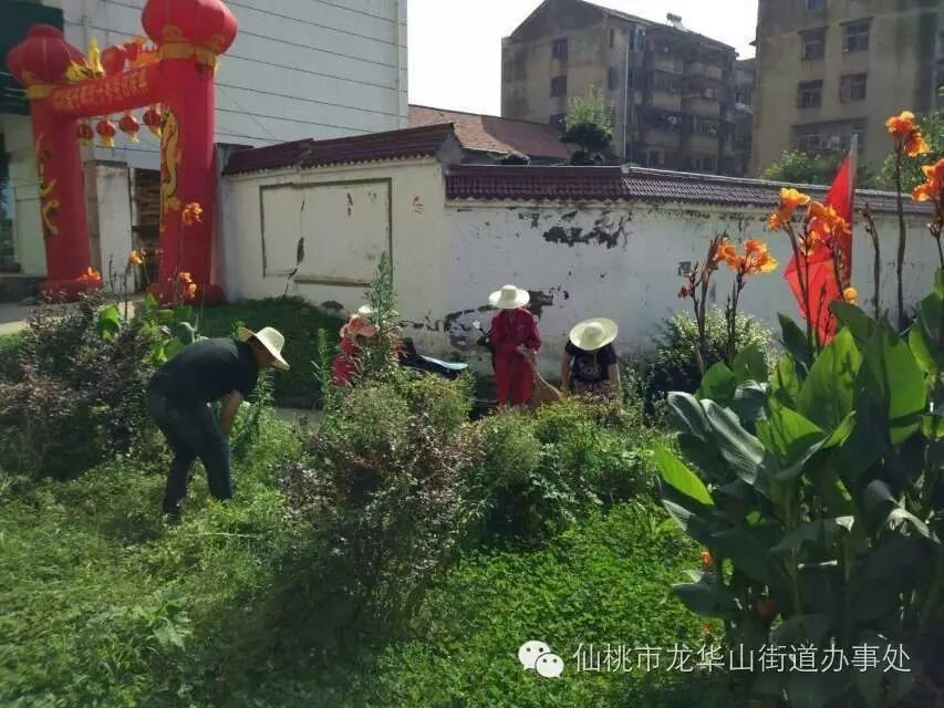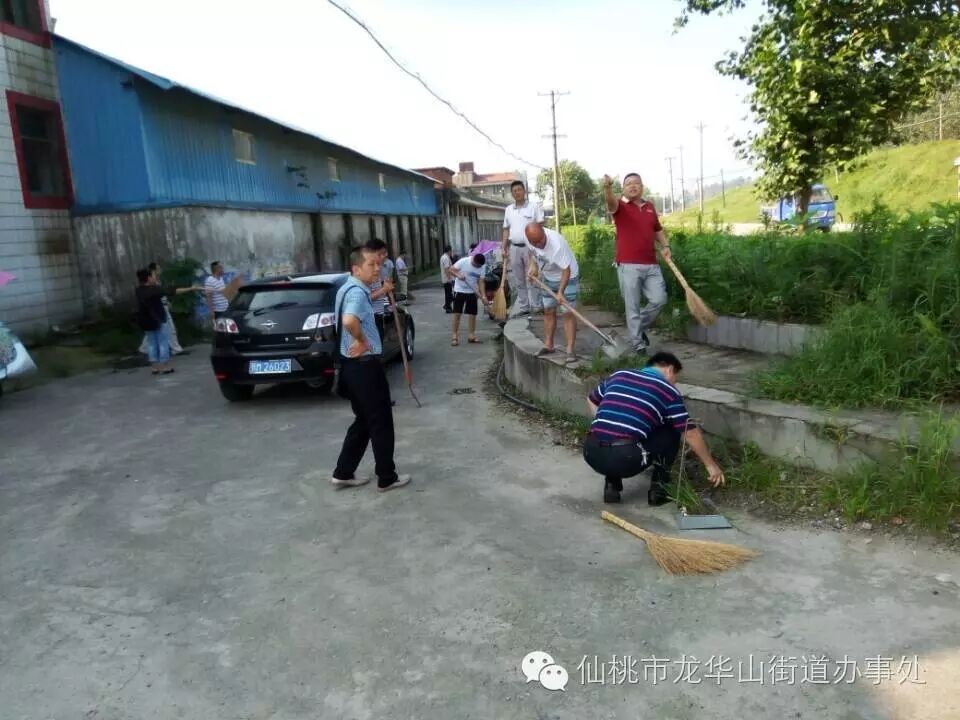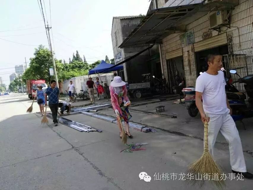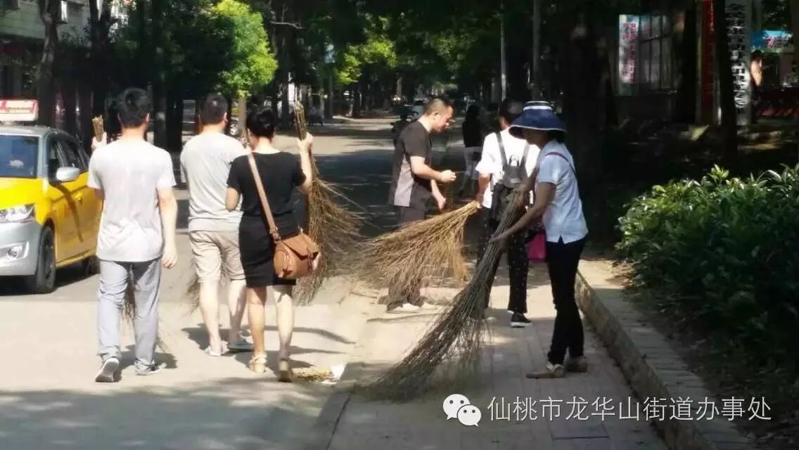 今天早上八点,龙华山街道办事处机关干部到黄金大道仙桃一中段面参加义务劳动。