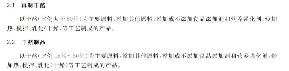 选择奶酪产品一定要看好配料表,目前这类奶制品分为原制奶酪(天然奶酪)和再制干酪两种。根据我国最新的《GB25192-2022食品安全国家标准 再制干酪和干酪制品》中的规定,再制干酪(再制奶酪)的干酪含量需大于50%,如果在15%~50%之间则为干酪制品(奶酪制品)。