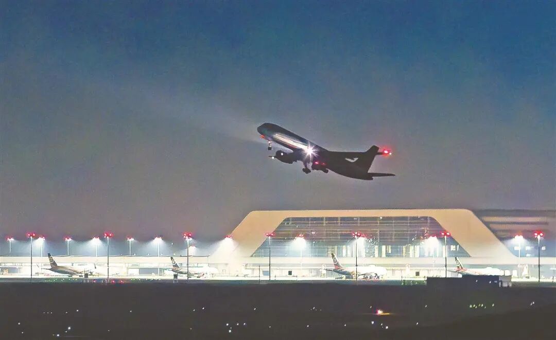 凌晨,装载完毕的货机依次从花湖国际机场起飞,满载货物飞赴全球。(湖北日报全媒记者 薛婷 柯皓摄)